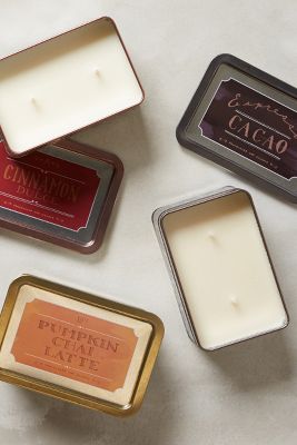 Anthropologie has the best ideas, like this cute candle tin! its shape allows for two wicks and the tin makes it both cute and bathroom safe! I think Cacao sounds like an awesome scent!